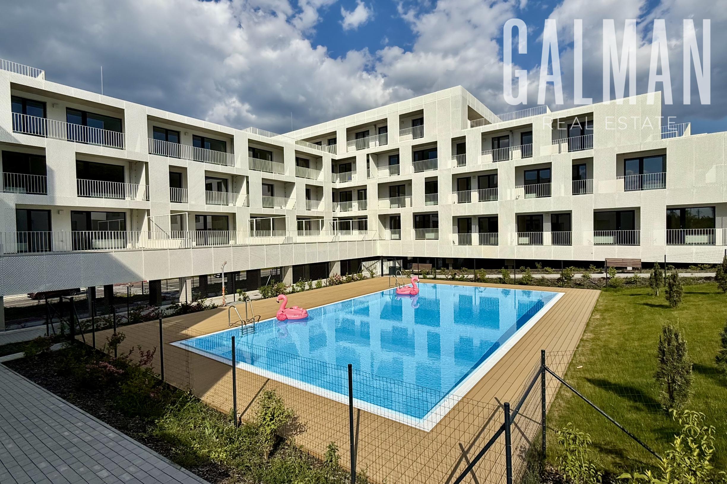 V projekte sa nachádza súkromný exteriérový bazén pre obyvateľov, parková úprava a zeleň.