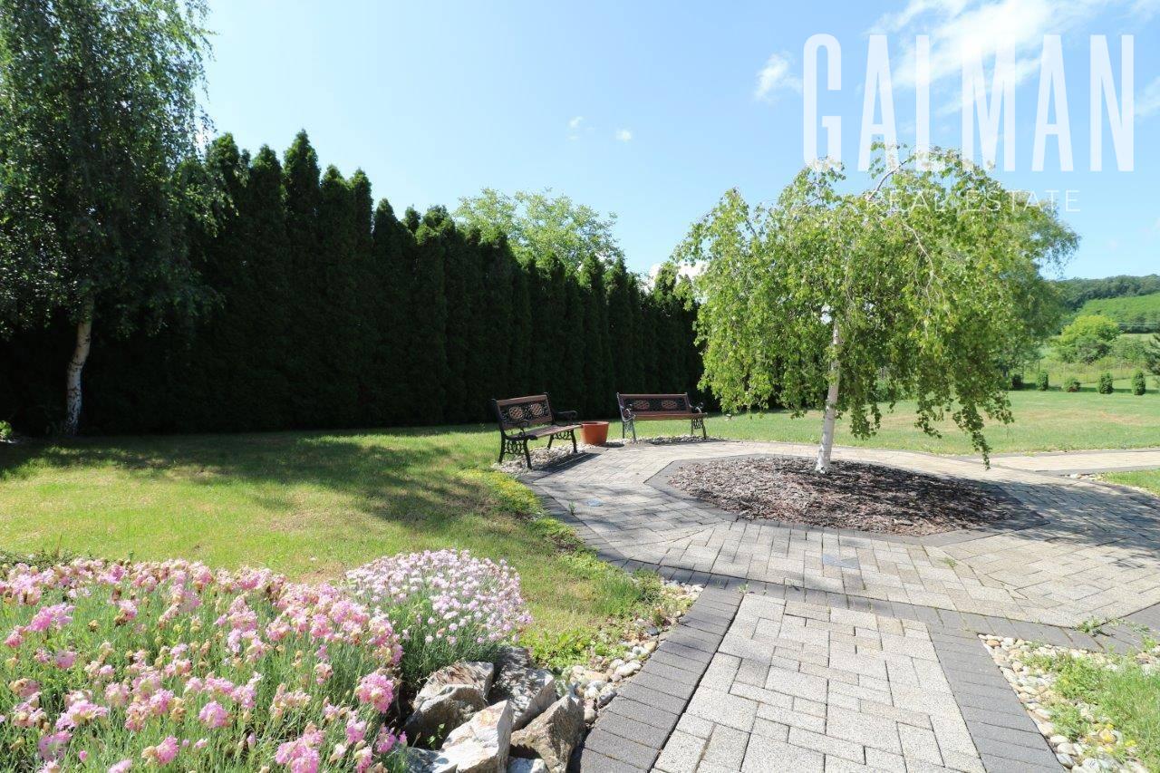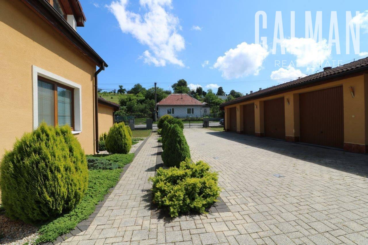 Celková výmera pozemku 2421 m2, v užívaní celkovo 3851 m2, zastavaná plocha rodinného domu 280 m2 + zastavaná plocha garáží 110 m2, úžitková plocha domu je 440 m2 + 90 m2 samostatné garáže.