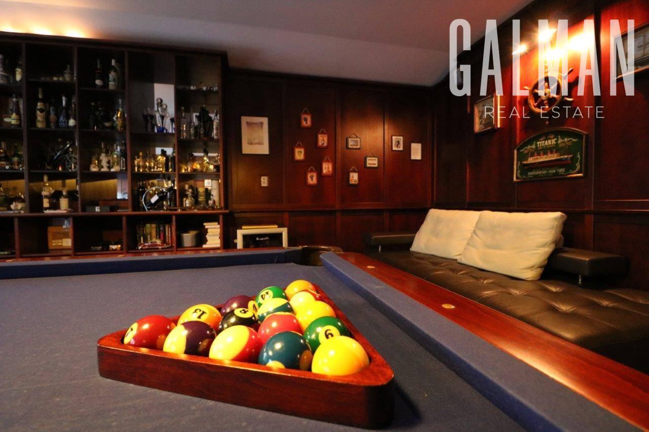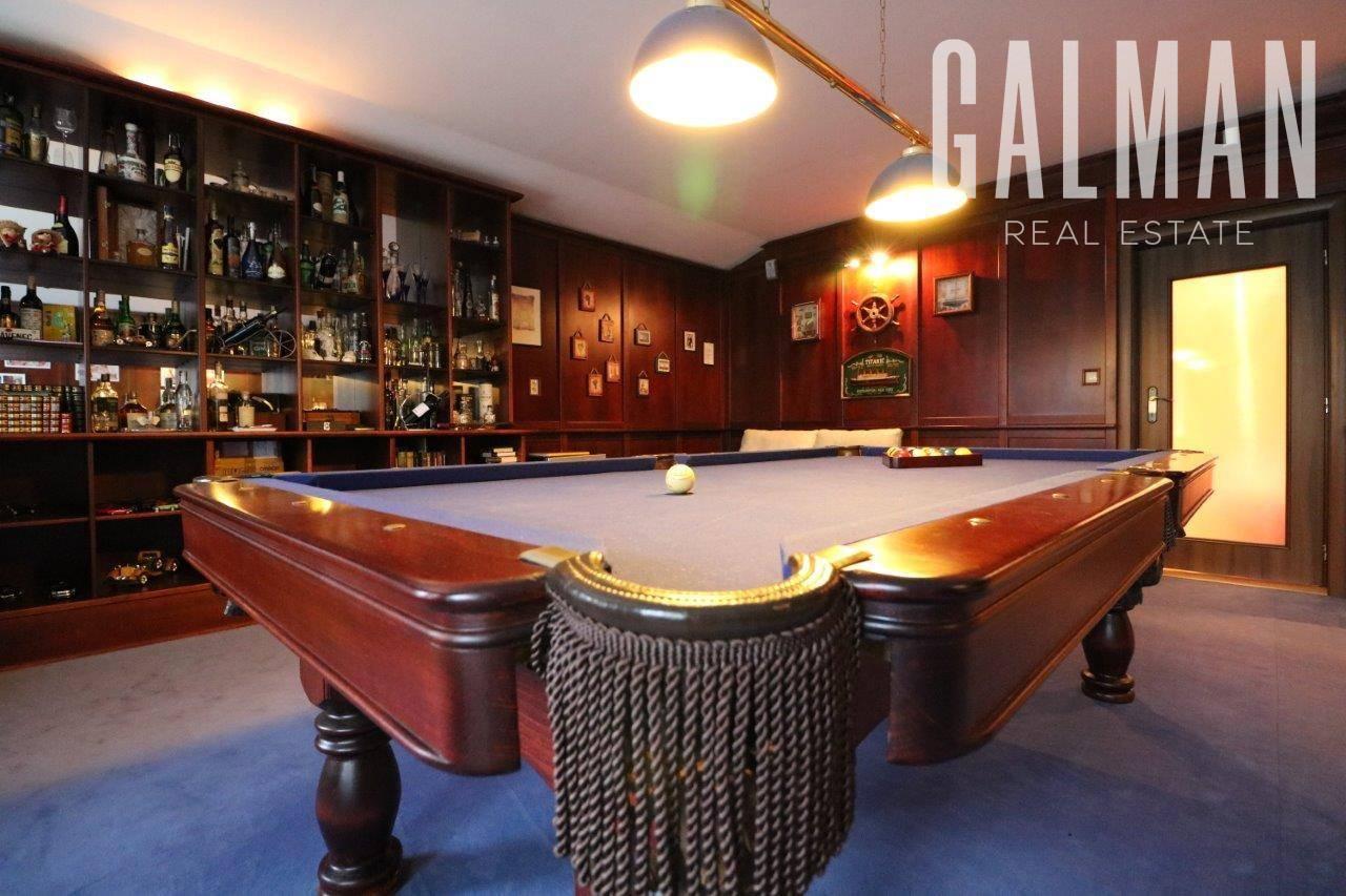 Na druhej strane prízemia sa nachádza 1x izba, samostatné sociálne zariadenie: sprchový kút + WC, technická miestnosť, špajza, šatník, práčovňa so sušiarňou, 1x „pánska miestnosť" s biliardovým stolom, nábytkom na mieru a dreveným obložením miestnosti.