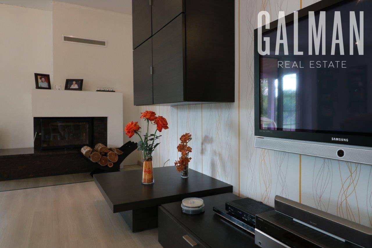 podlahy: gresová dlažba, laminátové parkety, koberec, sadrokartónové znížené stropy s bodovým osvetlením, kúrenie: plynový kondenzačný kotol Viessmann,
