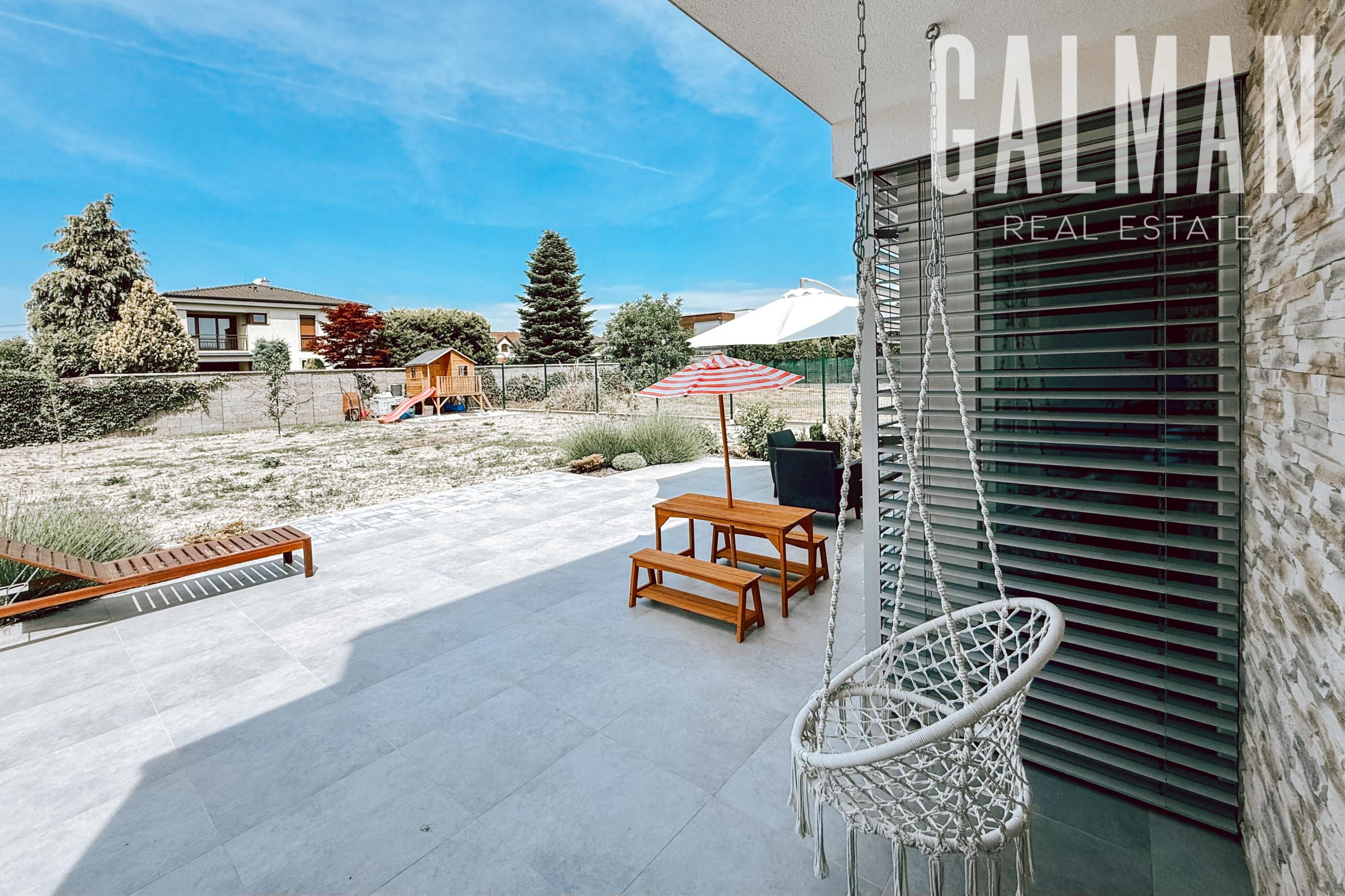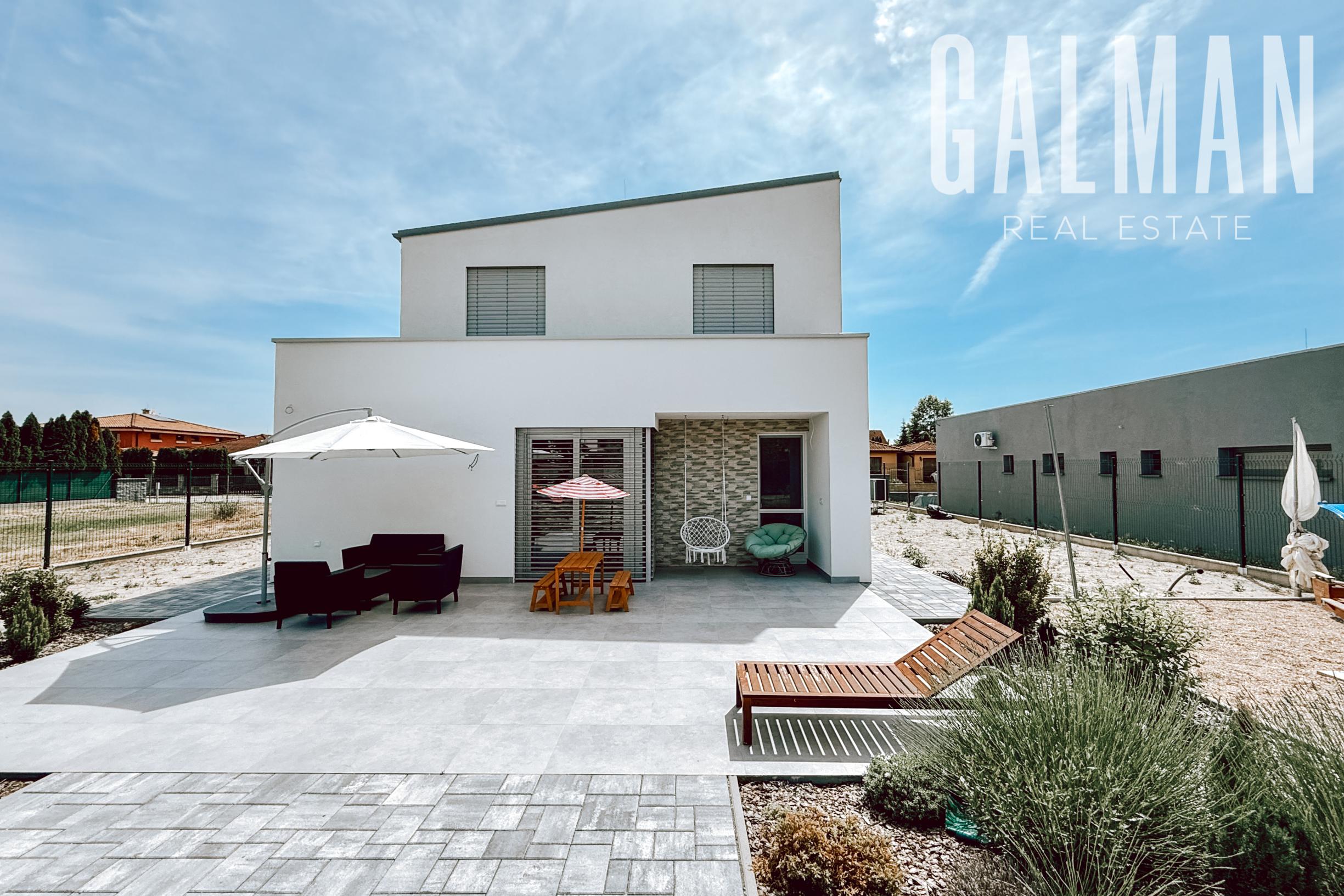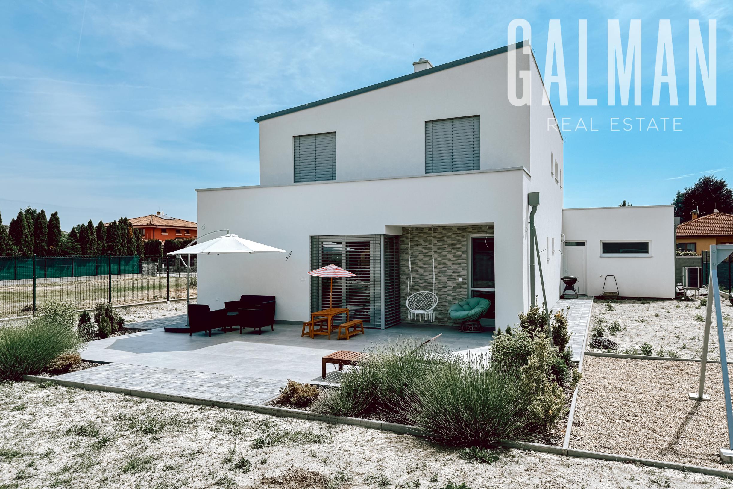 Spoločnosť GALMAN exkluzívne ponúka modernú novostavbu rodinného domu s veľkou záhradou vo výbornej lokalite pri Bratislave v obci Zálesie. Kvalitná nadčasová stavba s logickou dispozíciou na dvoch podlažiach ponúka komfort rodinného bývania s výhodou pokojnej a tichej rezidenčnej lokality. Pridanou hodnotou je nová vilová štvrť s dostupnosťou 15 minút do centra Bratislavy a dobrá občianska vybavenosť.
