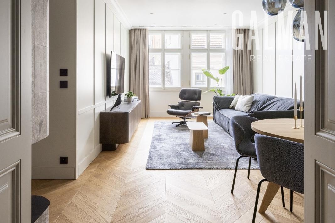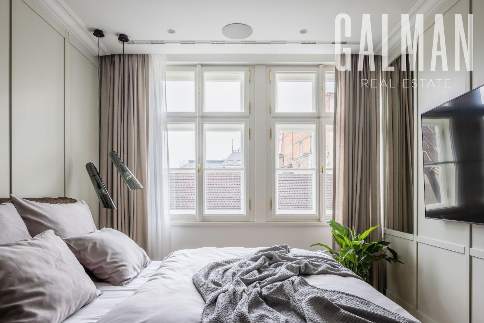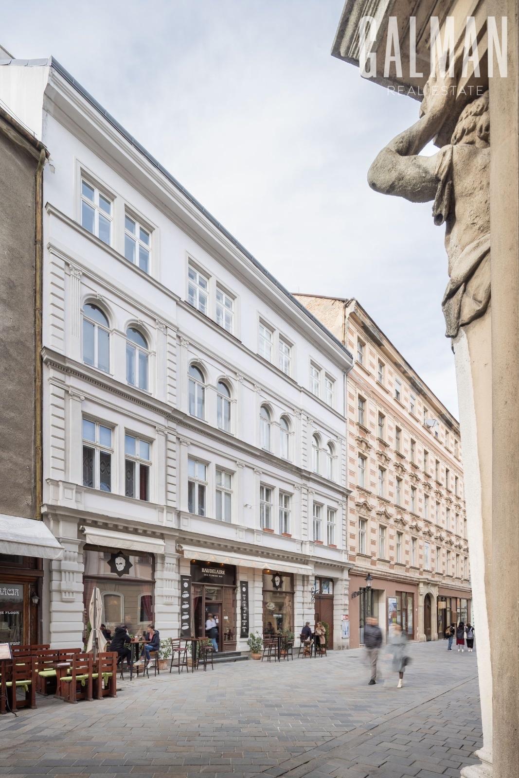 Spoločnosť GALMAN exkluzívne ponúka - luxusný 4 izbový byt v prestížnom prevedení z dielne renomovaného architektonického štúdia z Prahy v pešej zóne Starého Mesta na Panskej ulici. Tento unikátny byt sa nachádza v nádhernej historickej budove na treťom nadzemnom podlaží s výťahom a parkovaním pre jedno auto vo dvore. Interiér prešiel komplexnou prestavbou v tom najvyššom štandarde s použitím najkvalitnejších materiálov a technológií čím ponúka bývanie v metropole na svetovej úrovni aj pre toho najnáročnejšieho klienta. Zariadenie a prevedenie je premyslené do posledného detailu a má jedinečnú atmosféru domova aj napriek svojmu vznešenému vzhľadu použitím prírodných materiálov. Dispozícia bytu je vytvorená v rozumnom členení a je citlivo rozdelená na zóny pre najvyšší komfort a súkromie. Denná časť je tvorená vstupnou halou s prechodom do čiastočne oddelenej štýlovej kuchyne, hosťovskou toaletou a elegantnou obývacou izbou s krbom a jedálenským kútom. Nočnú časť bytu tvorí prechodová hala so vstavaným šatníkom, 3 spálne pričom jedna /master/ s walk-in šatníkom, dve samostatné kúpeľne s vaňou a sprchovacím kútom, práčovňa. Všetky spotrebiče zn. Miele sú najvyššej kategórie, byt nikdy nebol obývaný a je pripravený k okamžitému užívaniu[/b]. Cena prenájmu tejto nadštandardnej nehnuteľnosti je 4.000€ mesačne plus náklady na energie /cca 500€/ podľa reálnej spotreby nájomcu vrátane vonkajšieho parkovacieho státia. Preferovaný je dlhodobý nájomný vzťah.