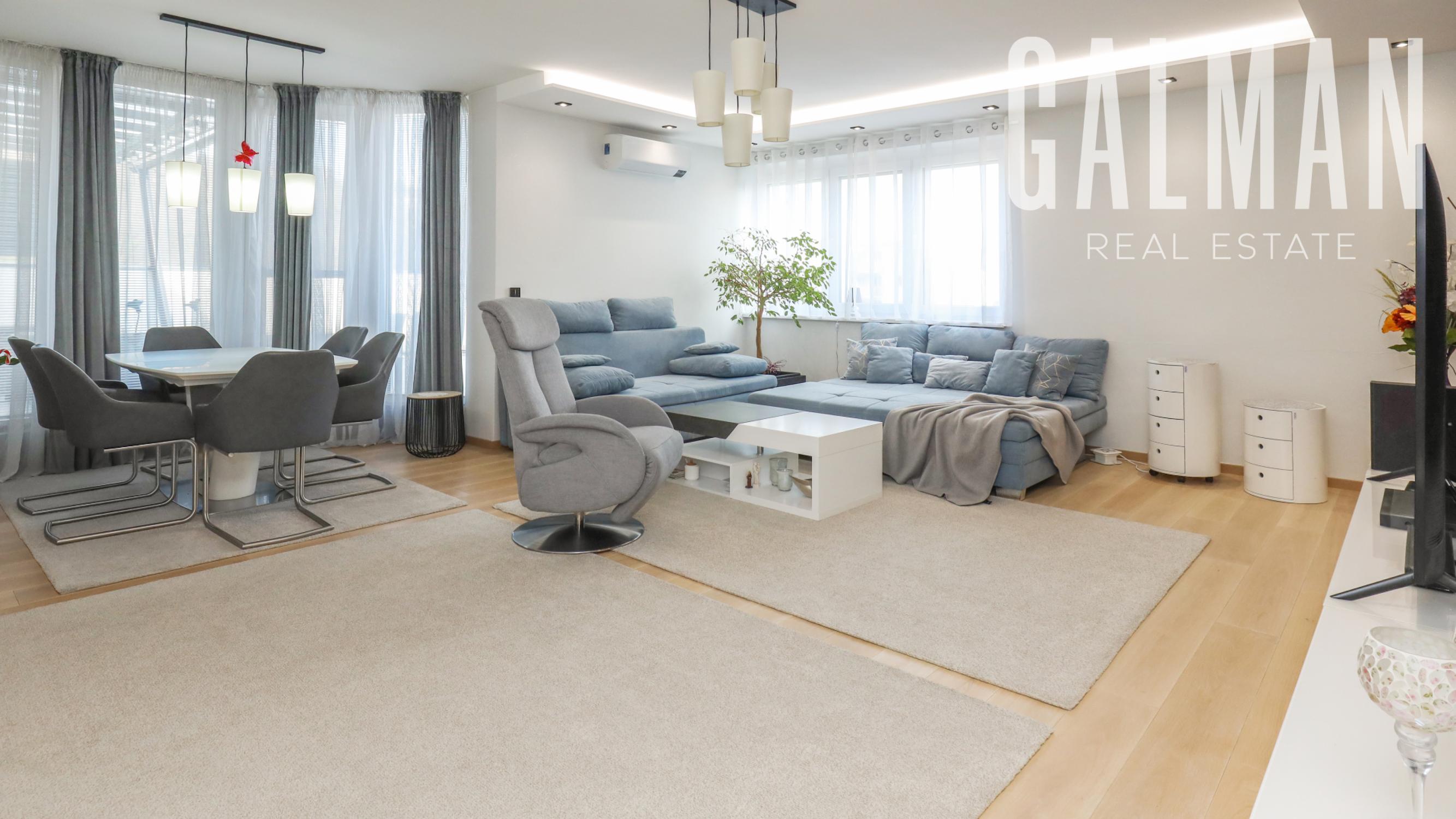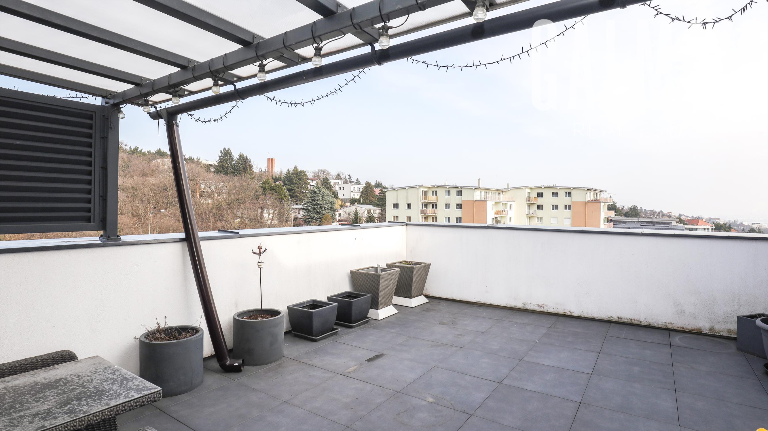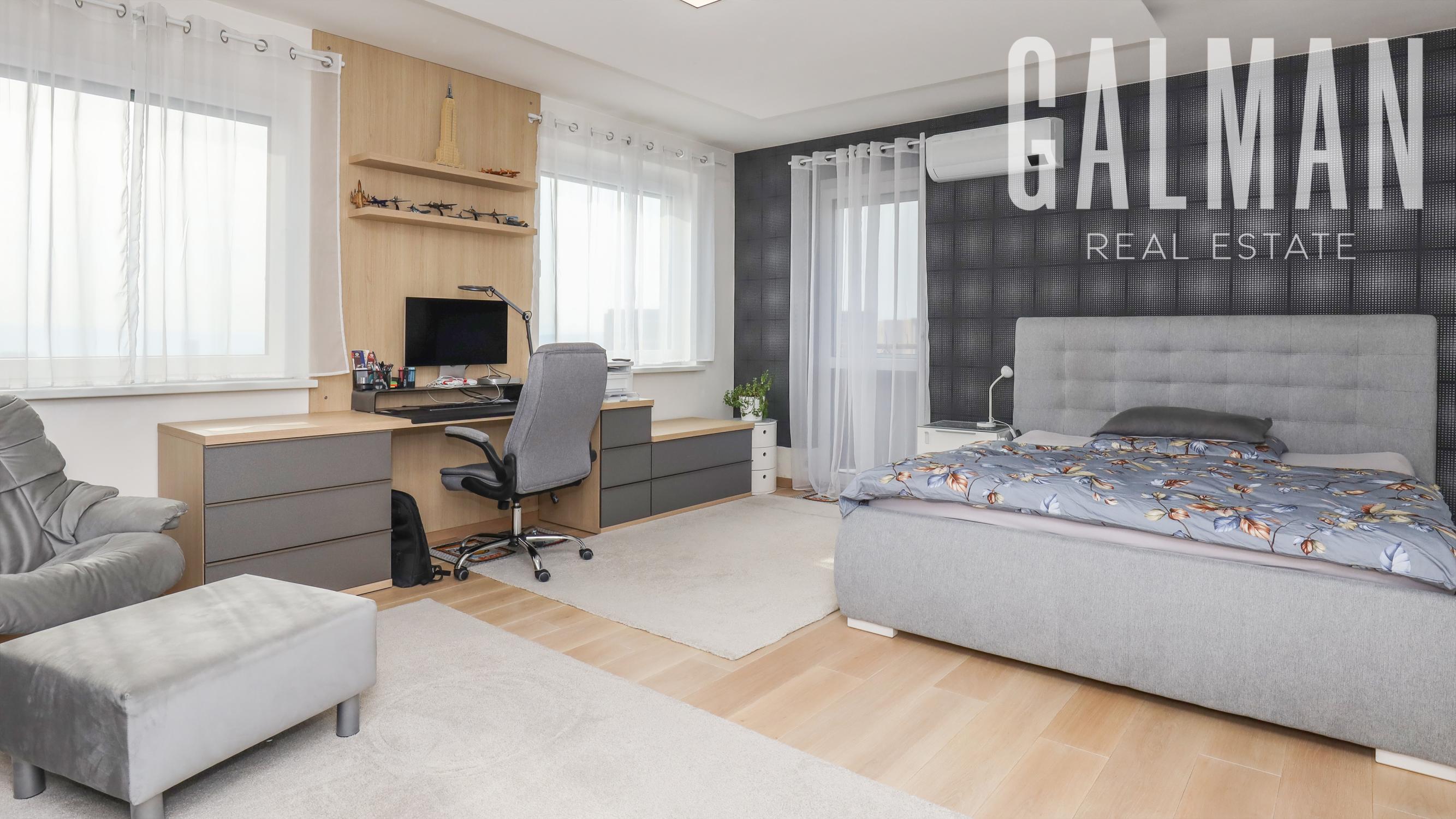 Spoločnosť GALMAN exkluzívne ponúka nadštandardný a veľkorysý 6 izbový penthouse s dvomi terasami a krásnym výhľadom na mesto vo vyhľadávanej lokalite Horné Kramáre pod Kolibským lesom. Tento veľkometrážny strešný byt s podlahovou plochou až 220 m2 a exteriérovou výmerou terás a balkónov spolu 57,5 m2 vznikol spojením dvoch bytov počas výstavby projektu. Je výnimočný tým, že je jediný na svojom podlaží a poskytuje tak maximálne súkromie s výhľadom na lesy Koliby a panorámu mesta.