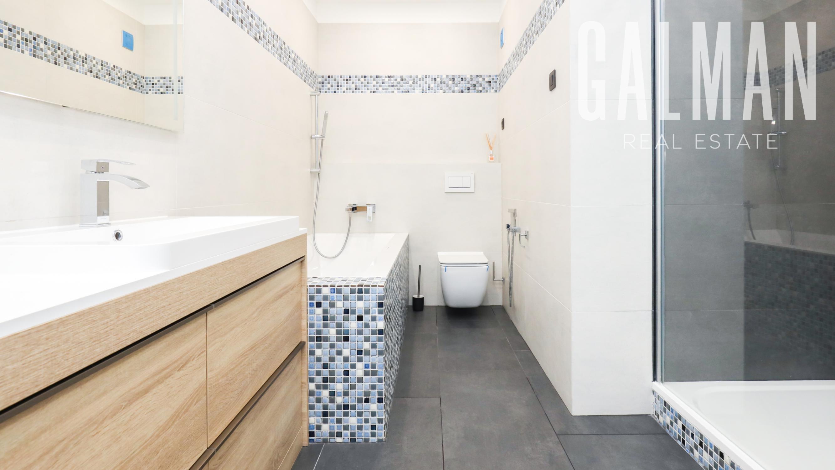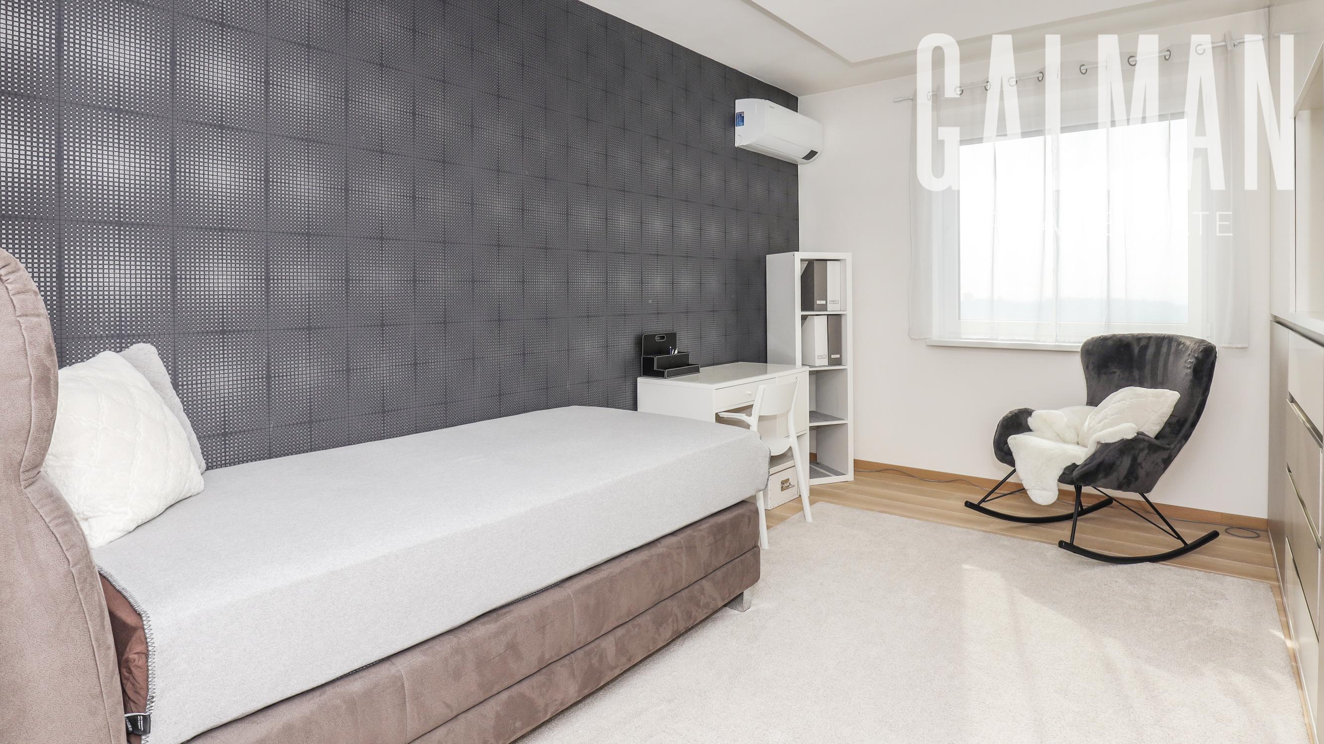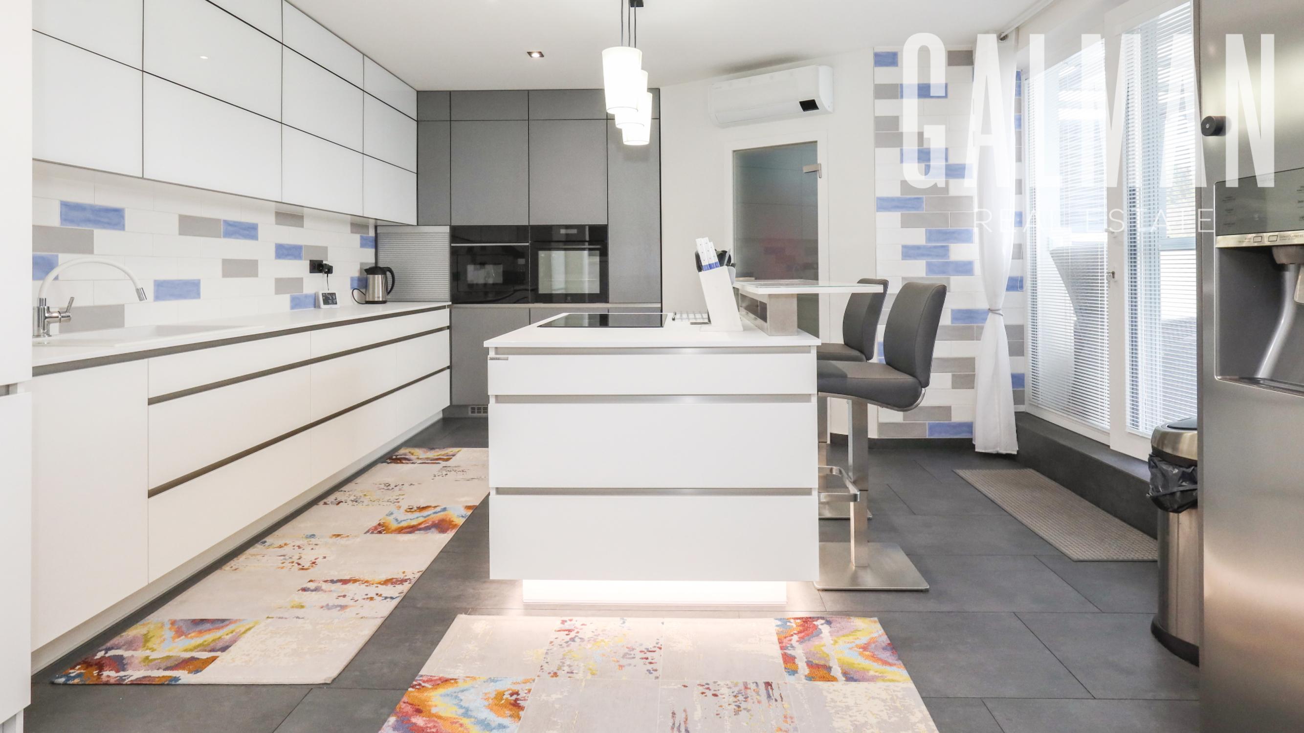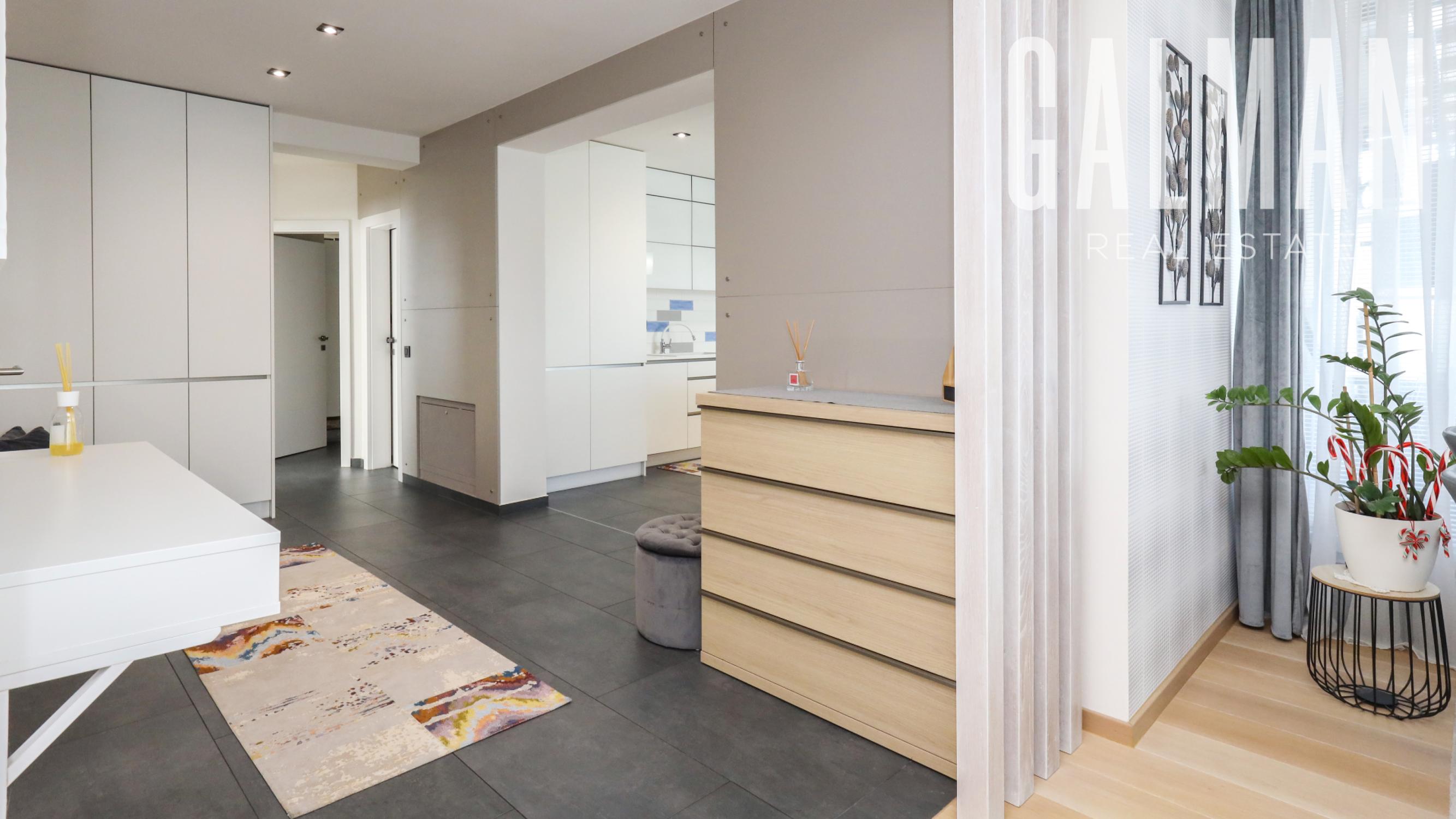 Dispozíciu penthousu tvorí menšia predsieň so vstavanou skriňou, vstupná hala, ktorá spája priestrannú dennú obývaciu izbu a samostatnú kuchyňu s komorou, pričom obe so vstupom na hornú terasu, a veľkú hosťovskú izbu s balkónom a vlastnou kúpeľňou. Z presvetlenej obývacej izby sa pol-úrovňovým schodiskom ďalej prepája nočná časť bytu tvorená 3 samostatnými spálňami a veľkým "walk-in" šatníkom, veľkou kúpeľňou a druhým šatníkom "walk-in", menšou galériou so vstupom na spodnú terasu. Byt má zabezpečené podlahové kúrenie novými spoločnými kotlami bytového domu, vstavaný nábytok na mieru, dizajnové osvetlenie so stmievaním, plastové 7 komorové okná a balkónové dvere zn. SCHUCO, elektrické vonkajšie rolety na diaľkové ovládanie, kompletne zariadenú kuchynskú linku so vstavanými spotrebičmi, v každej izbe klimatizácia Samsung, nové stupačky.. Prislúcha mu komfortná pivničná kobka a parkovacie státie v rezidenčnej garáži bytového domu, ktoré je možné dokúpiť za 20.000€. Nehnuteľnosť prešla v roku 2021 kompletnou modernou rekonštrukciou podľa dnešných trendov a predstáv náročného klienta.