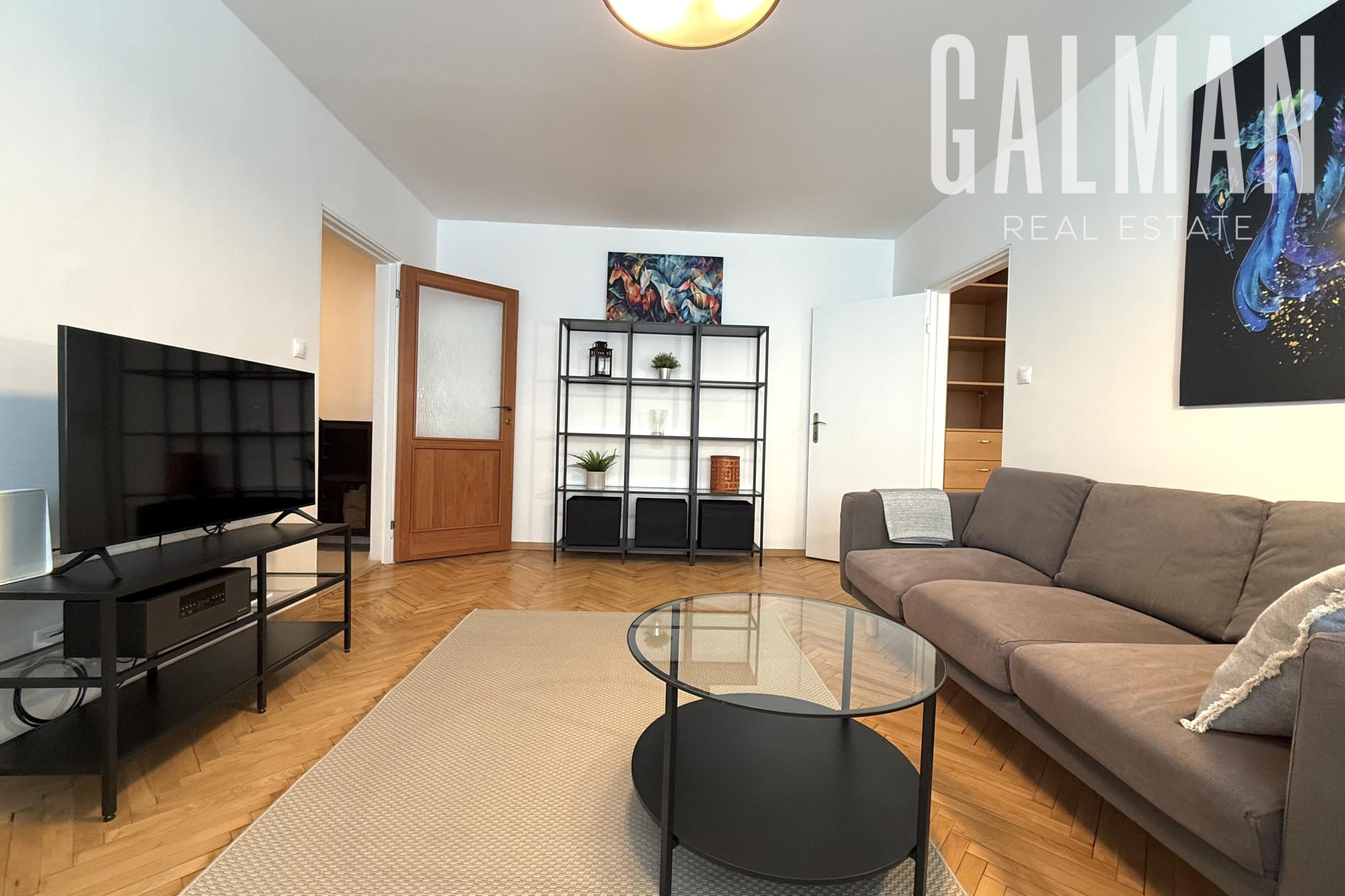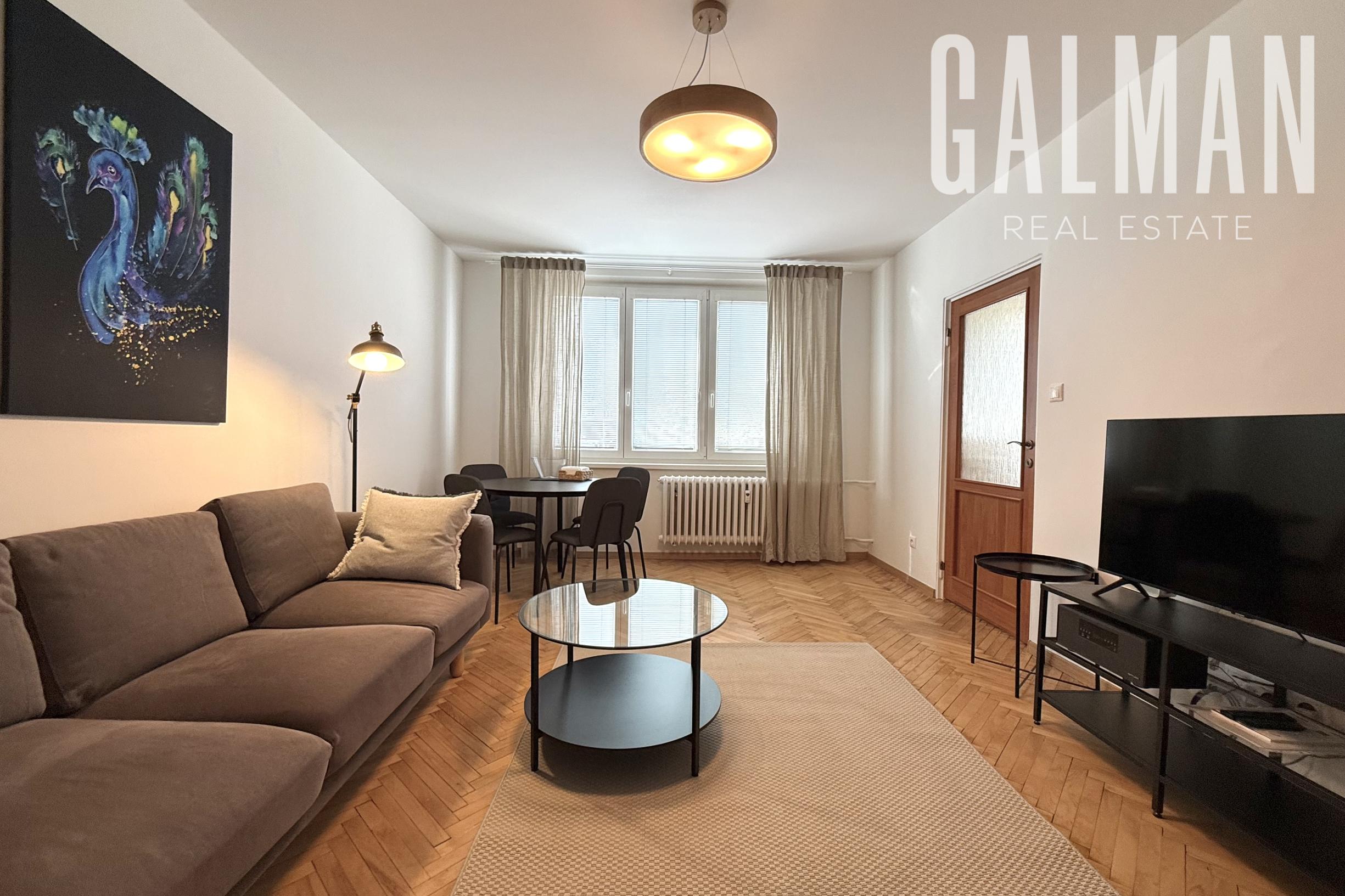 Spoločnosť GALMAN ponúka EXKLUZÍVNE na prenájom pekný ZARIADENÝ 2 izbový byt so samostatnou kuchyňou v žiadanej lokalite pri Račianskom mýte, BA III., ul. Jozefa Cígera Hronského, 63 m2, vnútorná plocha bytu 55 m2 + loggia a balkón (spolu 5m2) + pivnica 3 m2, nový výťah, poschodie 1/6, 2. NP, zateplenie, REKONŠTRUKCIA.